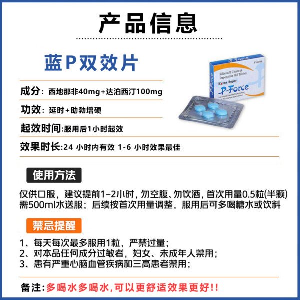 首页 默认 男用双效 蓝P 印度经典 双效片 P-Force 蓝P 印度经典 双效片 P-Force ¥88.00 规格 选择一个选项1盒4粒清除 蓝P 印度经典 双效片 P-Force 数量 加入购物车 立即购买 服务原装正品保证24小时内极速发货隐私保护 · 保密发货退款保证 · 不满意可协商退款 描述 其他信息 海淘声明: 本商城于海外运营,下单付款代表已同意您的海淘/代购行为。 权利声明: 商城上的所有商品信息、客户评价、商品咨询、网友讨论等内容,是商城重要的经营资源,未经许可,禁止非法转载使用。注:本站商品信息均来自于合作方,其真实性、准确性和合法性由信息拥有者(合作方)负责。本站不提供任何保证,并不承担任何法律责任。 服务 正品保证✅极速发货✅隐私保护✅售后保障✅ 规格 1盒4粒 配送 快递发货 声明 本商品为境外商城运营,下单即视为您个人海淘行为 相关产品 印度 金刚马 金马胶囊 Hypower Musli ¥138.00 养精护体, 默认选择选项 本产品有多种变体。 可在产品页面上选择这些选项 立即购买 白钻 阿伐那非双效片 Ether Stenafly Power ¥178.00 男用双效, 默认选择选项 本产品有多种变体。 可在产品页面上选择这些选项 立即购买 印度威格拉 Vigora 单效助勃片 ¥88.00 单效助勃, 默认选择选项 本产品有多种变体。 可在产品页面上选择这些选项 立即购买 印度马牌200 顶级助勃 单效片 ¥98.00 单效助勃, 默认选择选项 本产品有多种变体。 可在产品页面上选择这些选项 立即购买